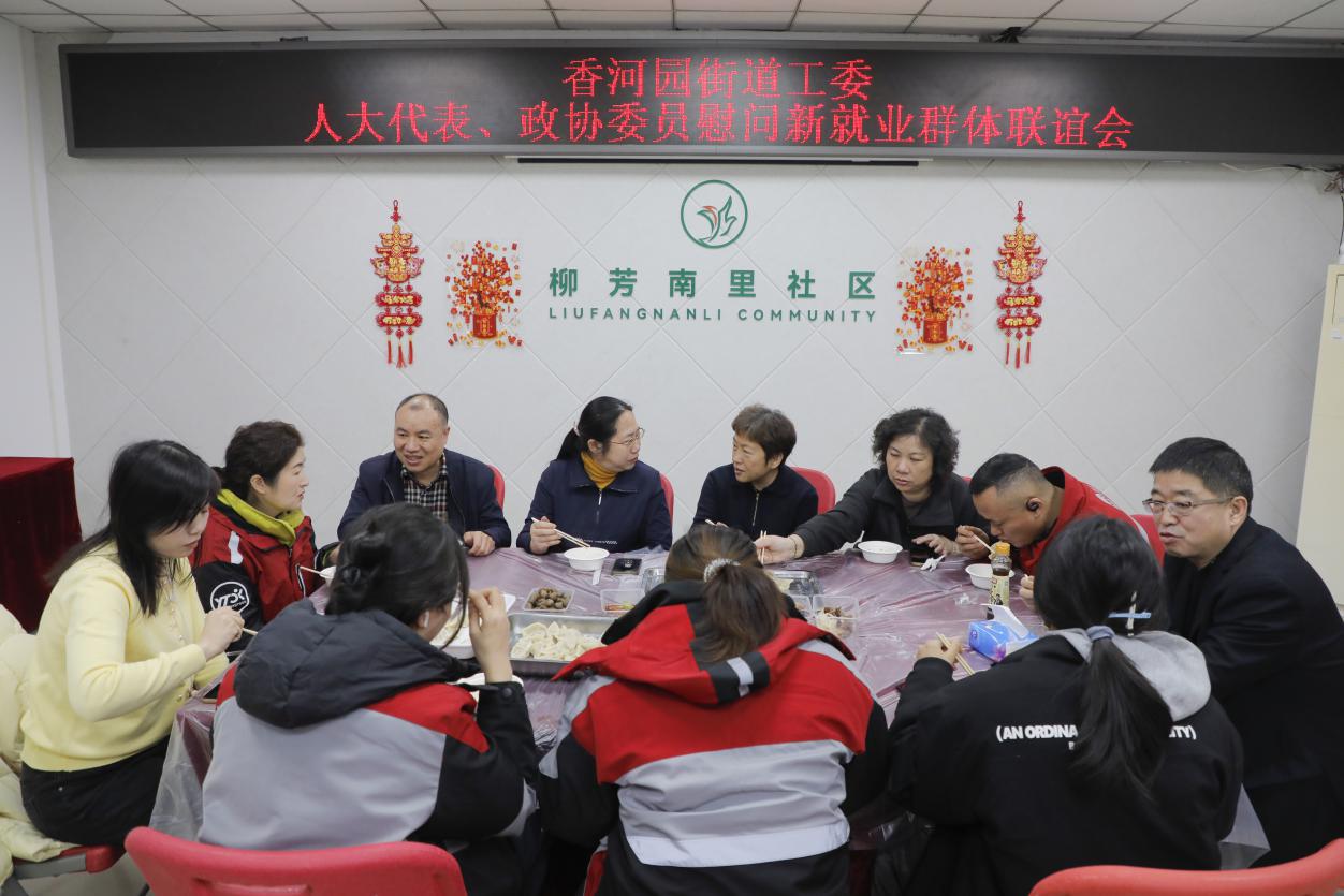 为密切政协委员与人民群众的联系,2月6日,香河园街道政协委员工作站组织地区部分政协委员,在柳芳南里社区开展慰问新就业群体活动。区政协委员牛宇闳、郑厚义走进社区,与来自顺丰快递、圆通速递的快递员们欢聚一堂,在共享美味的温馨氛围中,面对面交流,零距离倾听民声。