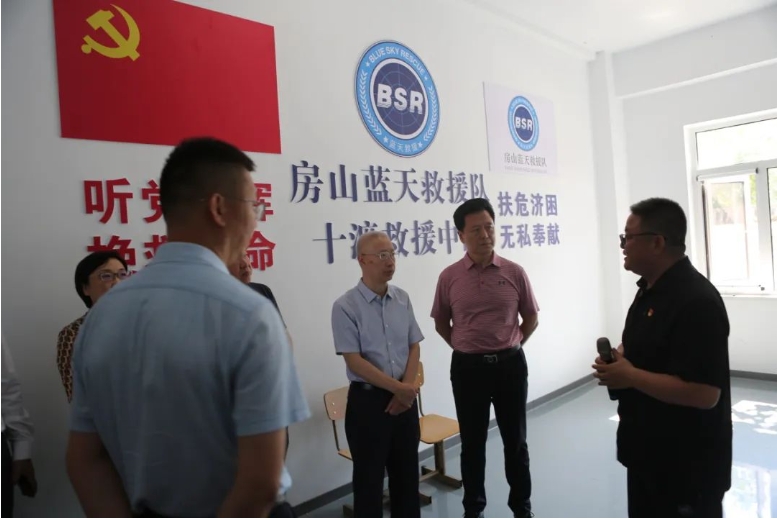 碧空之下,大山深处,一座崭新的米黄色建筑在阳光下熠熠生辉,这里正是被称为“应急方舟”的十渡镇应急保障中心,也是此行调研的第一站。调研组依次参观储备间、医疗室、器材库等地,详细了解这里的建设及使用情况。作为朝阳区与房山区开展结对帮扶援建工作的样板工程及标志性建筑,十渡镇应急保障中心总建筑面积1500平方米。自建成并投入使用以来,这座“应急方舟”根据使用情况随时变换“身份”。平时,作为十渡镇社区服务中心使用,保障十渡镇为群众开展各项公共服务;应急时,作为十渡镇应急保障中心使用,进一步增强十渡镇应对灾害的能力和水平,保障百姓生命财产安全。